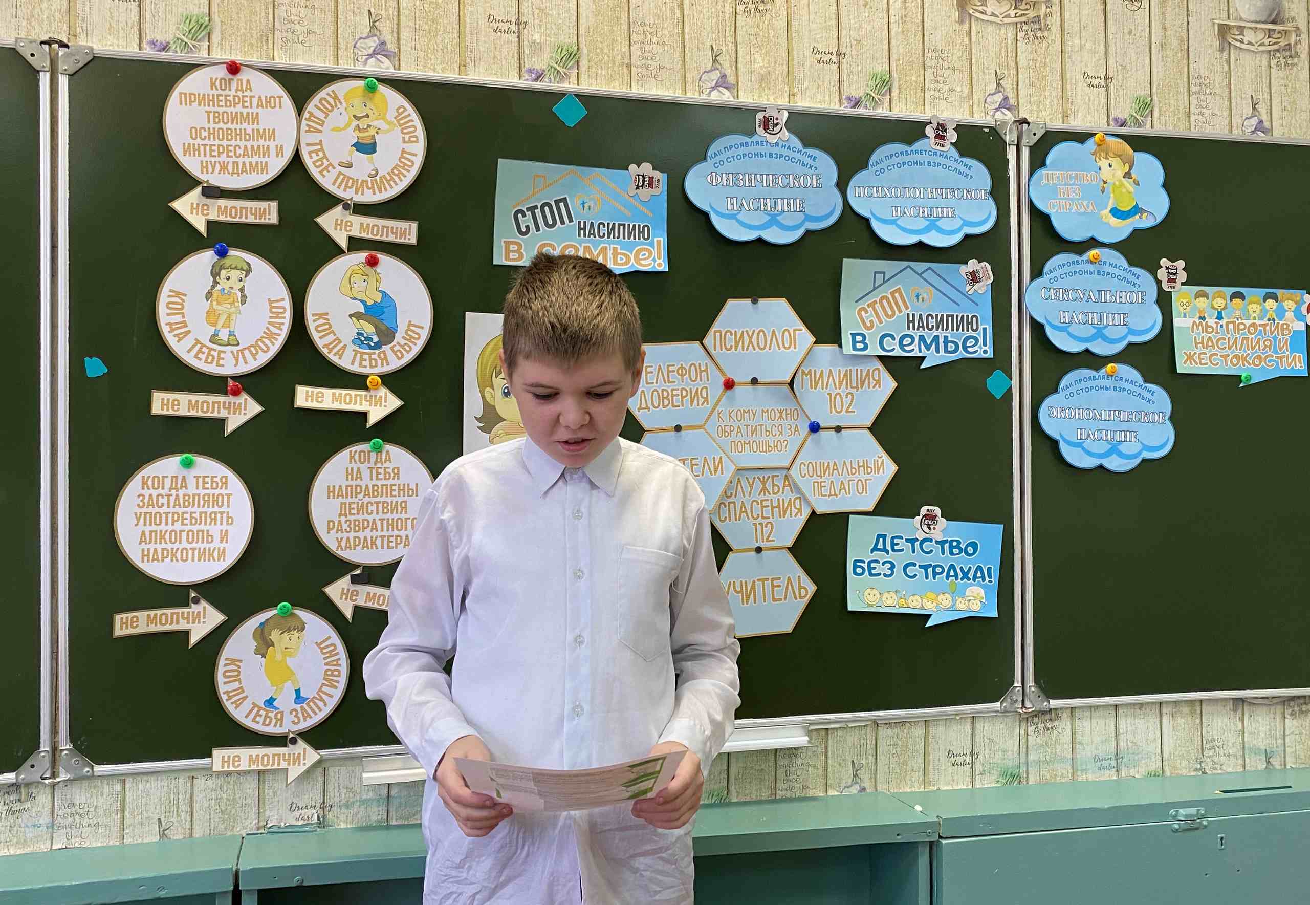 С целью содействия воспитанию отрицательного отношения к проявлениям жестокости и насилия среди сверстников, умения противостоять им, развития способности понимать и прощать другого человека 22 января в ГУО «Корнадская базовая школа» проведено внеклассное мероприятие «Детство без жестокости и насилия». В ходе мероприятия учащиеся раскрыли понятия «насилие», «жестокость», узнали о том, как может проявляться насилие со стороны взрослых, обсудили к кому можно обратиться за помощью, а также пытались найти мирные и спокойные варианты решения разных конфликтов.